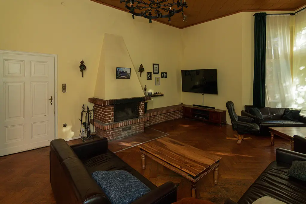 Kamin, einen Tischkicker, sowie einen großen Fernseher einschließlich Xbox und Playstation.